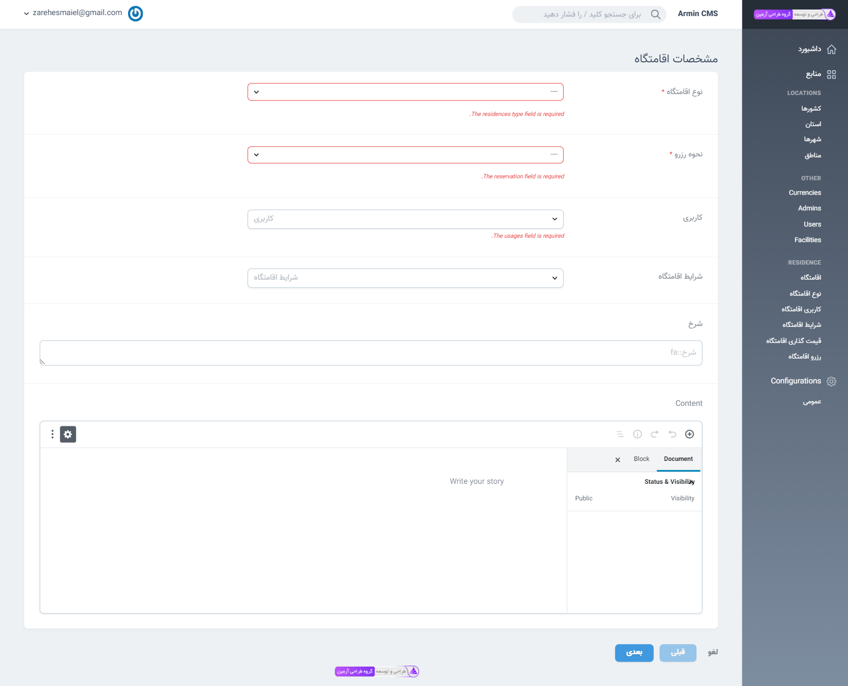 Under the hood; Armincms \ Wizard \ Step is a panel. so when going to the next step; all fields in that panel and previous steps should pass the validation rules. If validation fails; the first panel that contains an unvalidated attribute will be displayed.