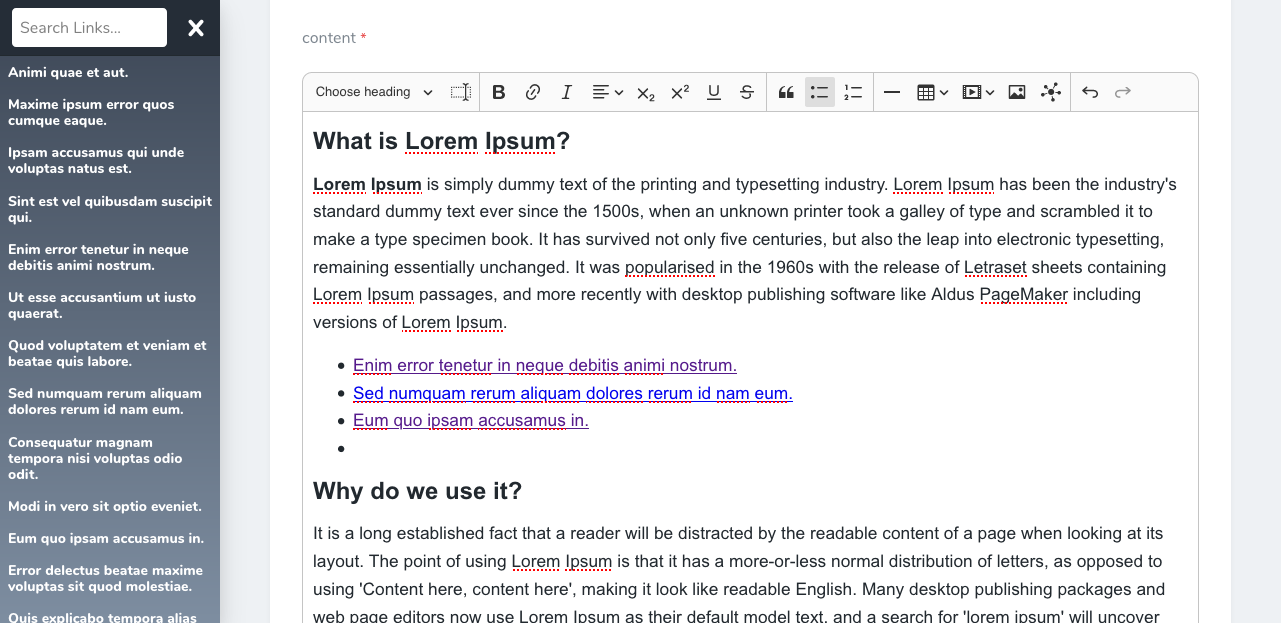 Includes custom written plugins for Media, Links & Snippet Modals. Publishable stubs for out-of-the-box usage. Implement rich content editing in minutes.