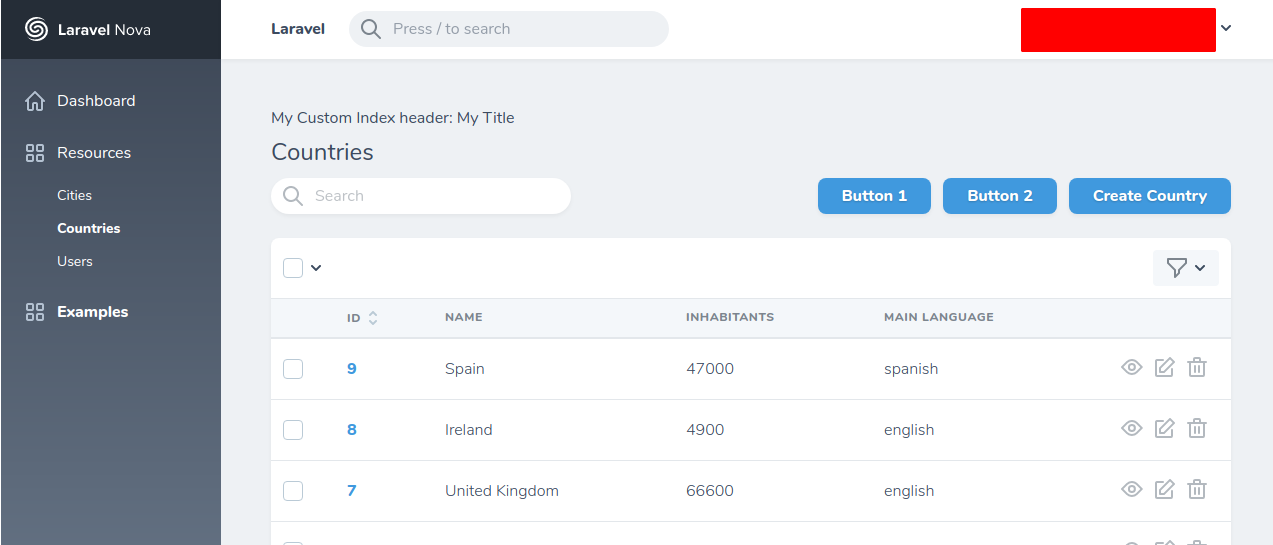 customAttachHeaderComponentscustomCreateHeaderComponentscustomDetailhHeaderComponentscustomDetailToolbarComponentscustomIndexHeaderComponentscustomIndexToolbarComponentscustomLensHeaderComponentscustomUpdateAttachHeaderComponentscustomUpdateHeaderComponents