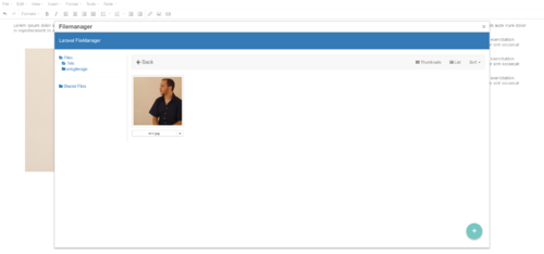 Now if you need to upload images from the text editor, we need to install UniSharp Laravel Filemanager, and pass the use_lfm => true option to your options array: