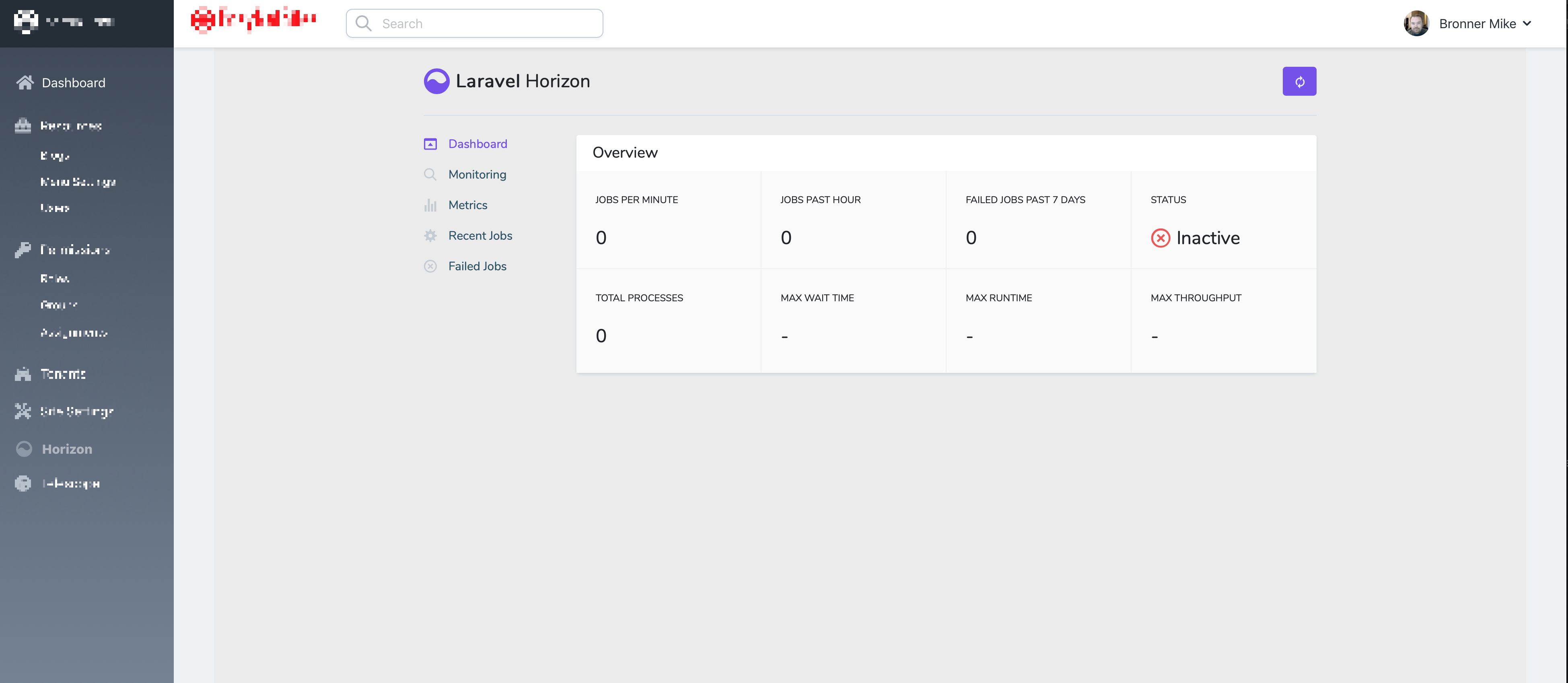 app\Providers\NovaServiceProvider.php:<?php namespace App\Providers; use GeneaLabs\NovaHorizon\NovaHorizon; use Laravel\Nova\NovaApplicationServiceProvider; class NovaServiceProvider extends NovaApplicationServiceProvider { //... public function tools() { return [ //... new NovaHorizon, ]; } //... }