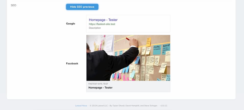 This custom nova field, can add SEO related fields to any Model through a morph relationship within one single trait.