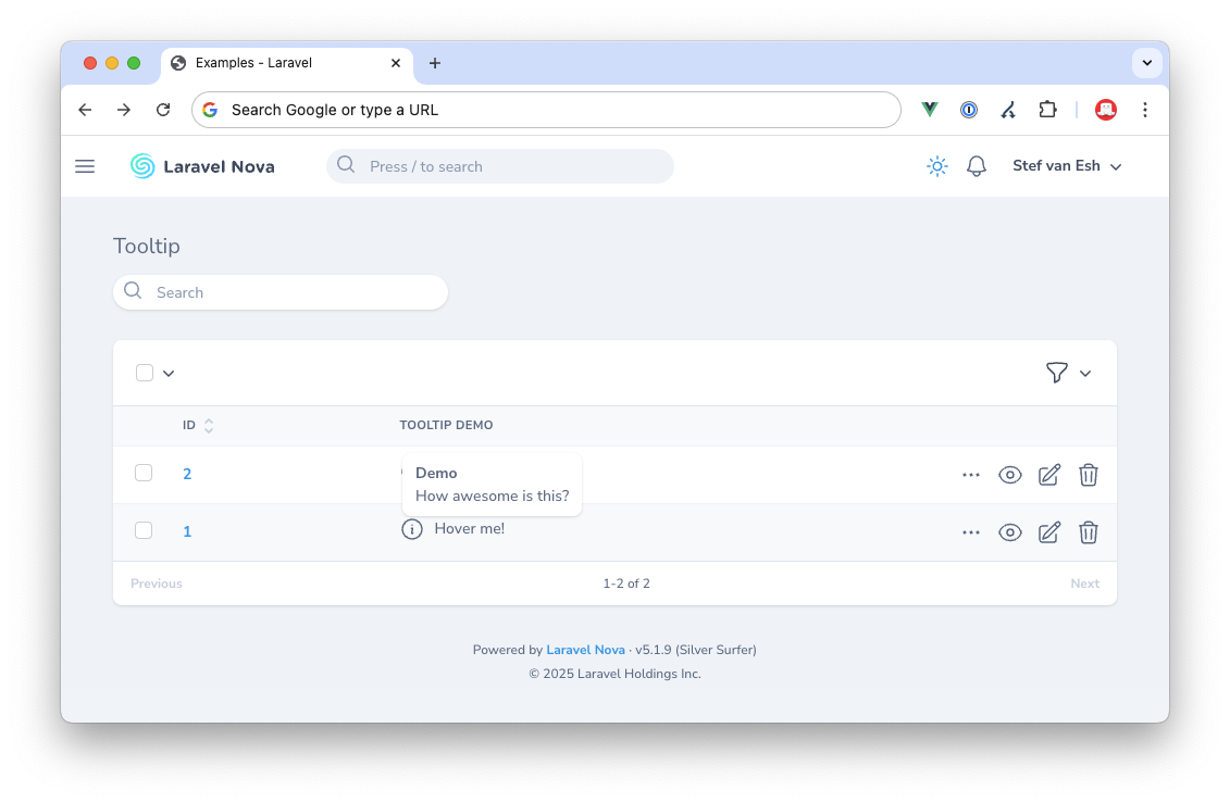 This Laravel Nova field enables you to make use of the default Nova Tooltip component.