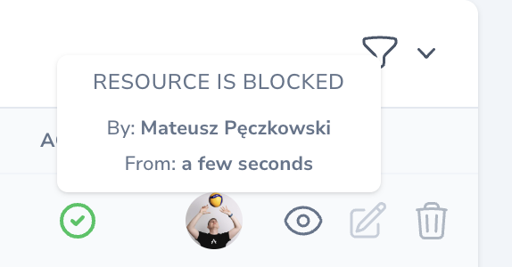 On a listing/details there will be information who is currently editing and as well another person will be blocked from editing the same resource to not overlap changes.