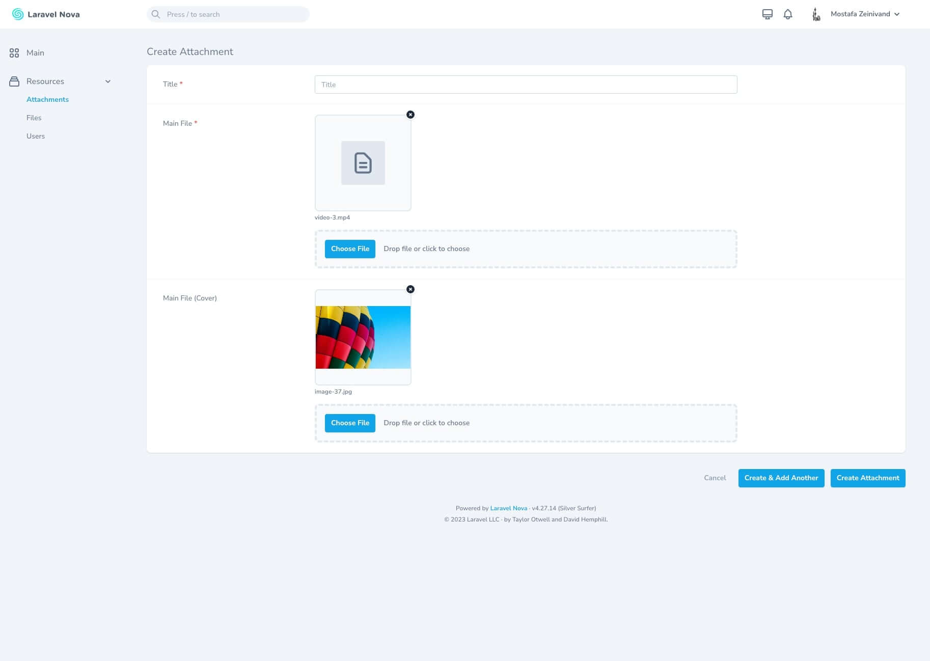 LaruploadAttachment::make('main_file')
