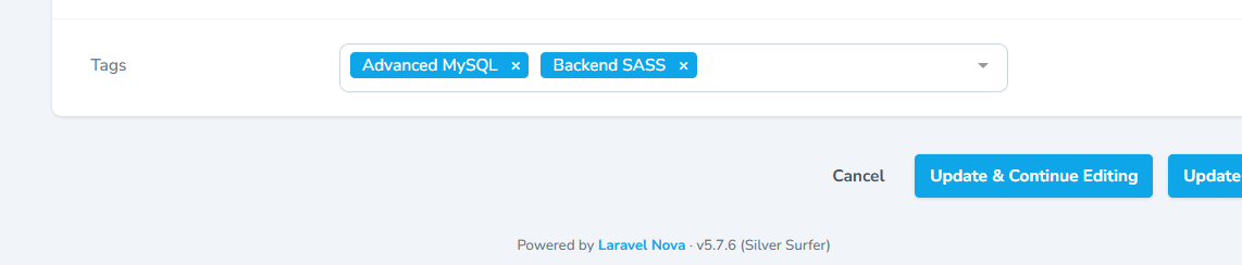 Belongstomany::make('Tags', 'tags', Tag::class)