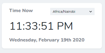 The card will be automatically displayed on the dashboard. You can now select the timezone from the dropdown list of registered timezones to view the current time in that region,