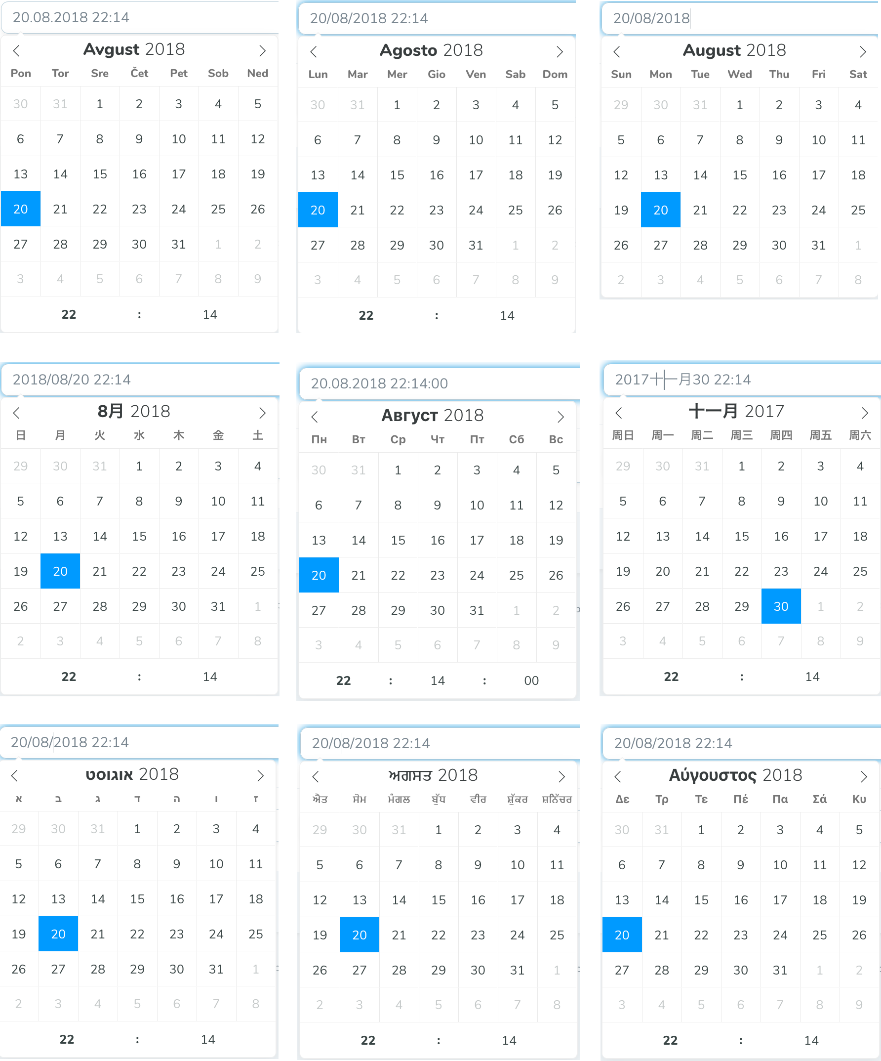 - timeFormat - OPTIONAL - Set a time format. The format must be MomentJS compatible! If you manually define an unsupported time format it will throw an Exception!