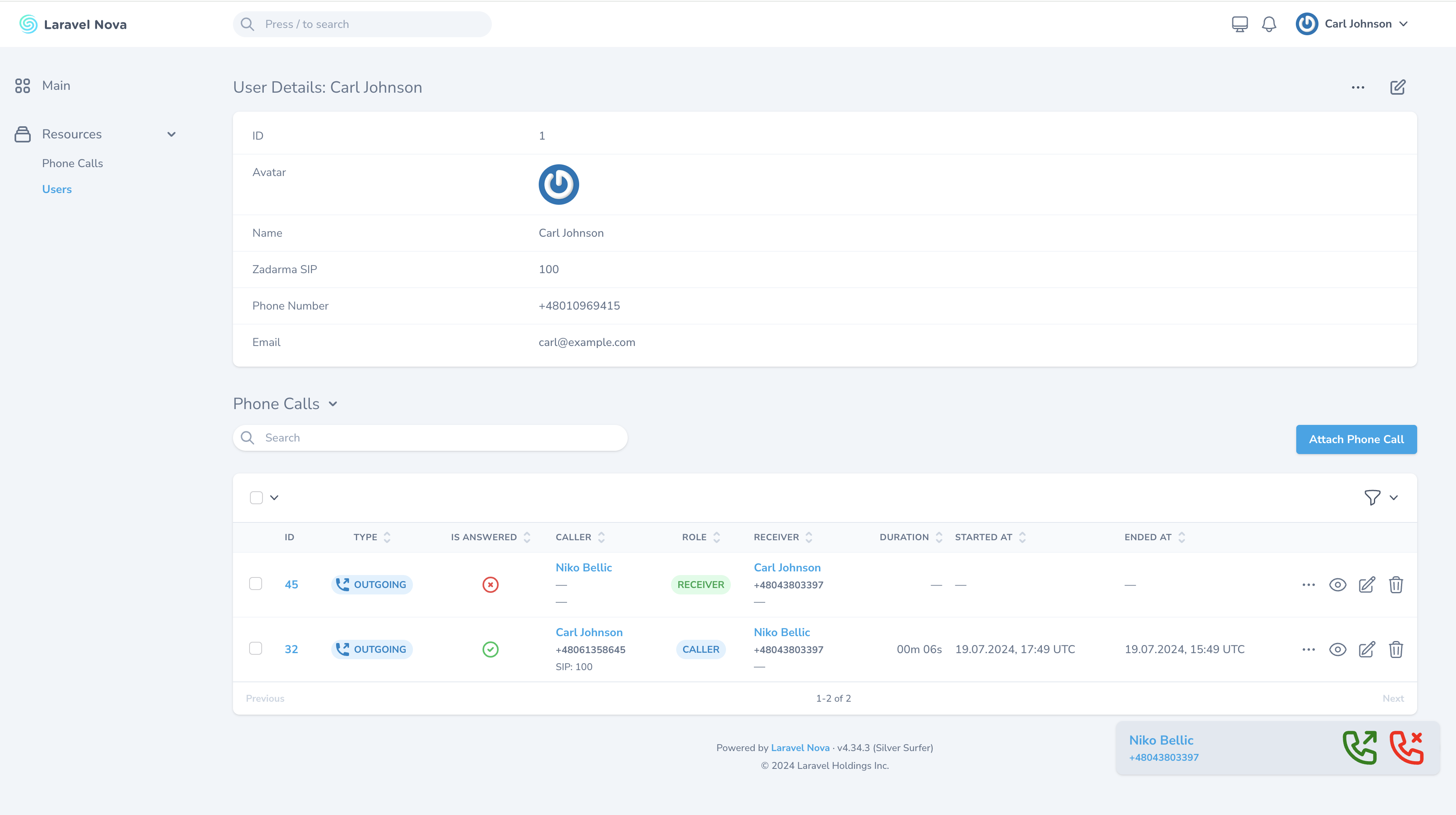 Laravel Nova Zadarma VoIP Integration