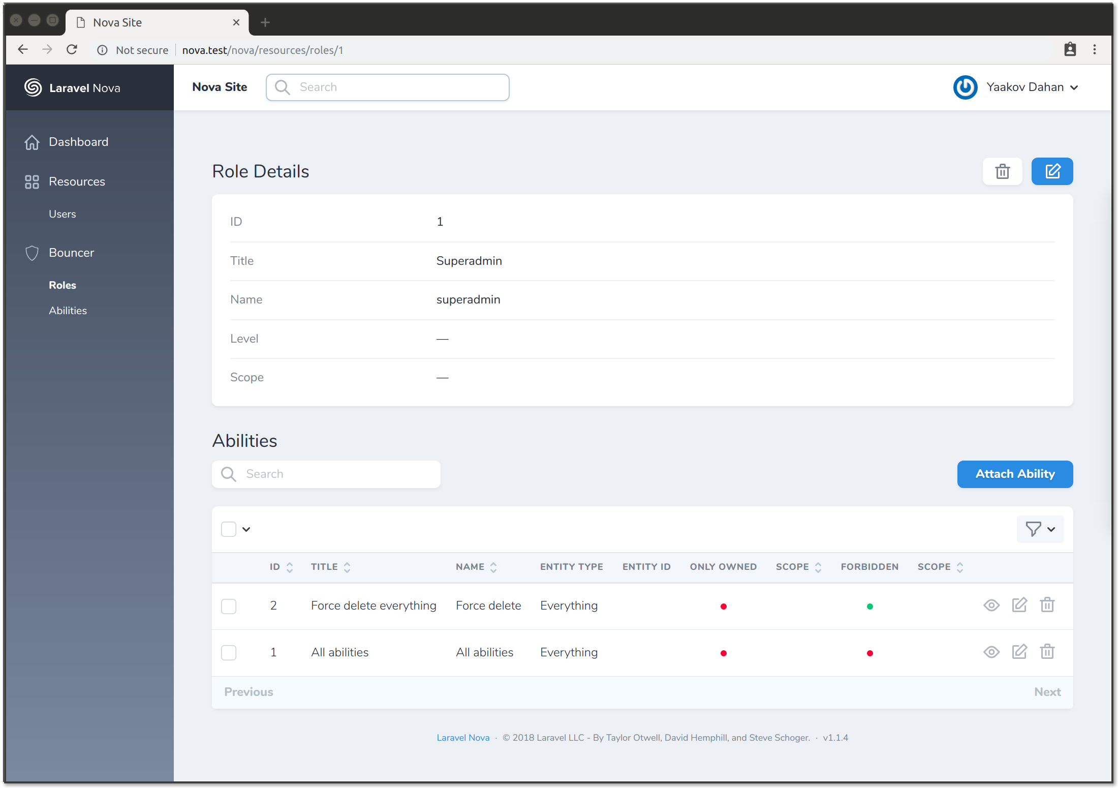 Use the power of Bouncer within your Nova administration panel.